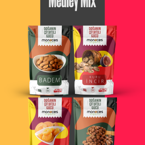 - Powerful Nut Medley, enerji dolu bir atıştırmalık arayanlar için mükemmel bir seçenektir. Bu kombinasyon, Giresun fındığı, Datça bademi, Aydın kuru inciri ve Jumbo Malatya kuru kayısısı gibi güçlü besinlerle doludur.